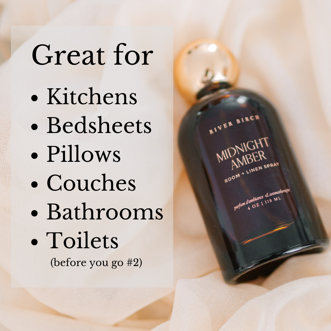 Experience luxury with Midnight Amber, a limited edition room and linen spray blending jasmine, saffron, cedarwood, and amber. This fragrance creates an intimate, romantic atmosphere that lingers beautifully throughout your space.
